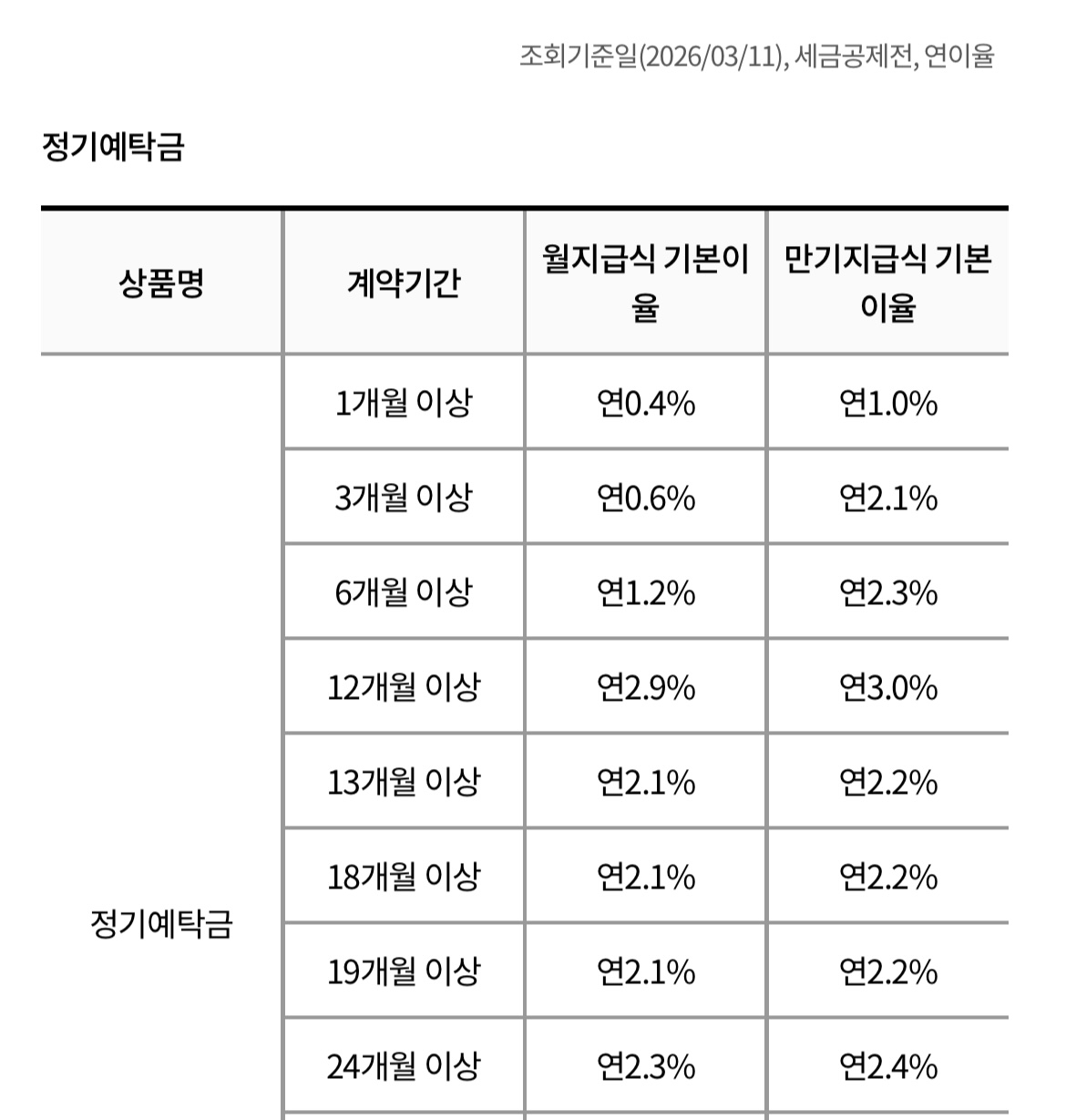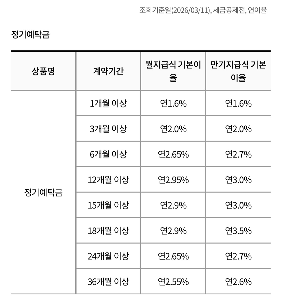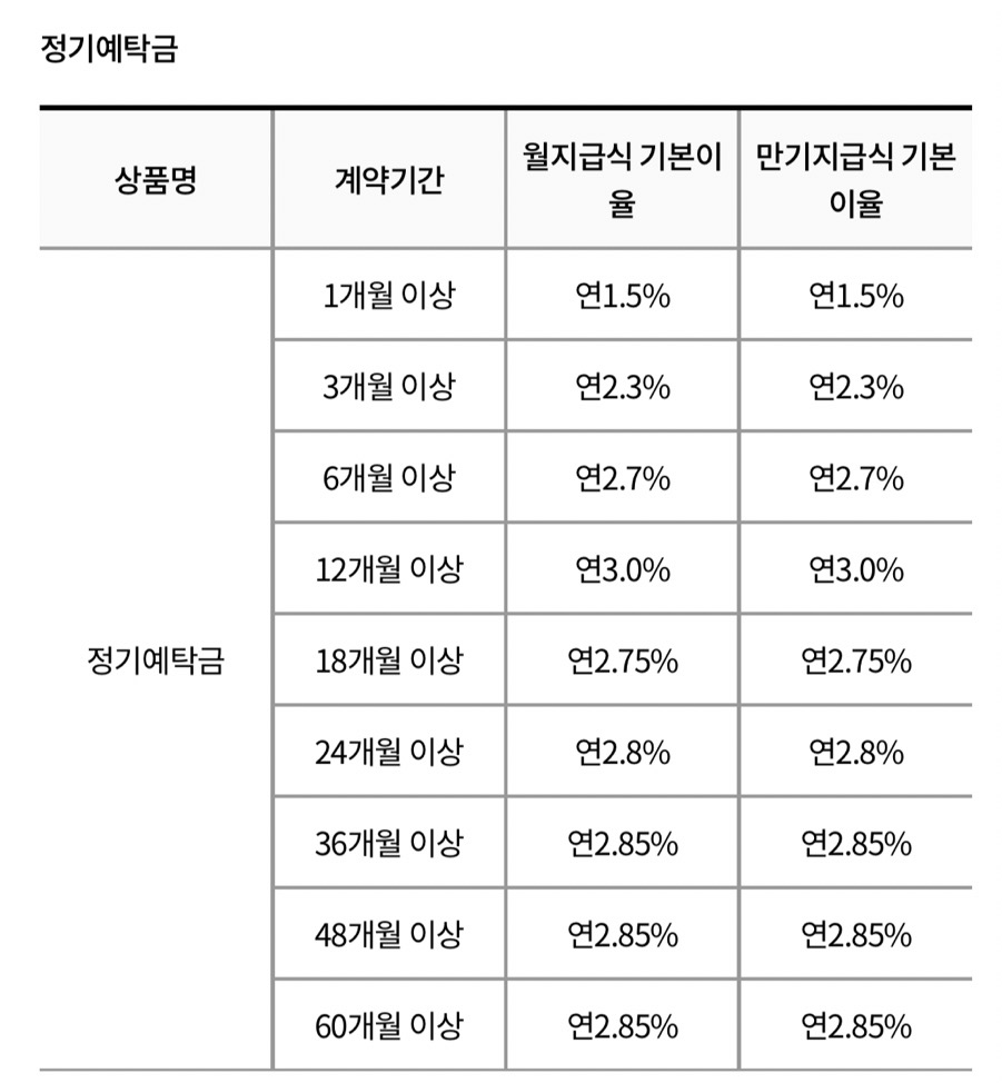 다만 정기예탁금은 만기 전에 해지할 경우 중도해지이율이 적용되어 약정 금리보다 낮은 이자를 받을 수 있습니다. 또한 만기일이 법정공휴일 · 근로자의 날 · 토요일 등인 경우에는 직전 영업일에 해지가 가능하며, 이때 약정이율을 적용하되 앞당긴 일수만큼 이자가 차감되어 지급된다는 점도 함께 알아두시면 좋습니다.