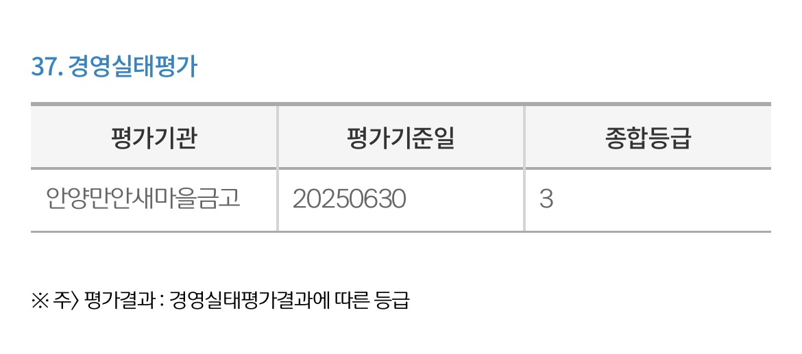 1. 안성 새마을금고 : 3등급