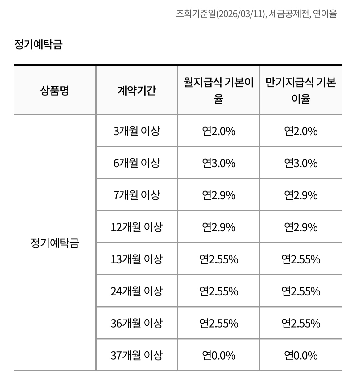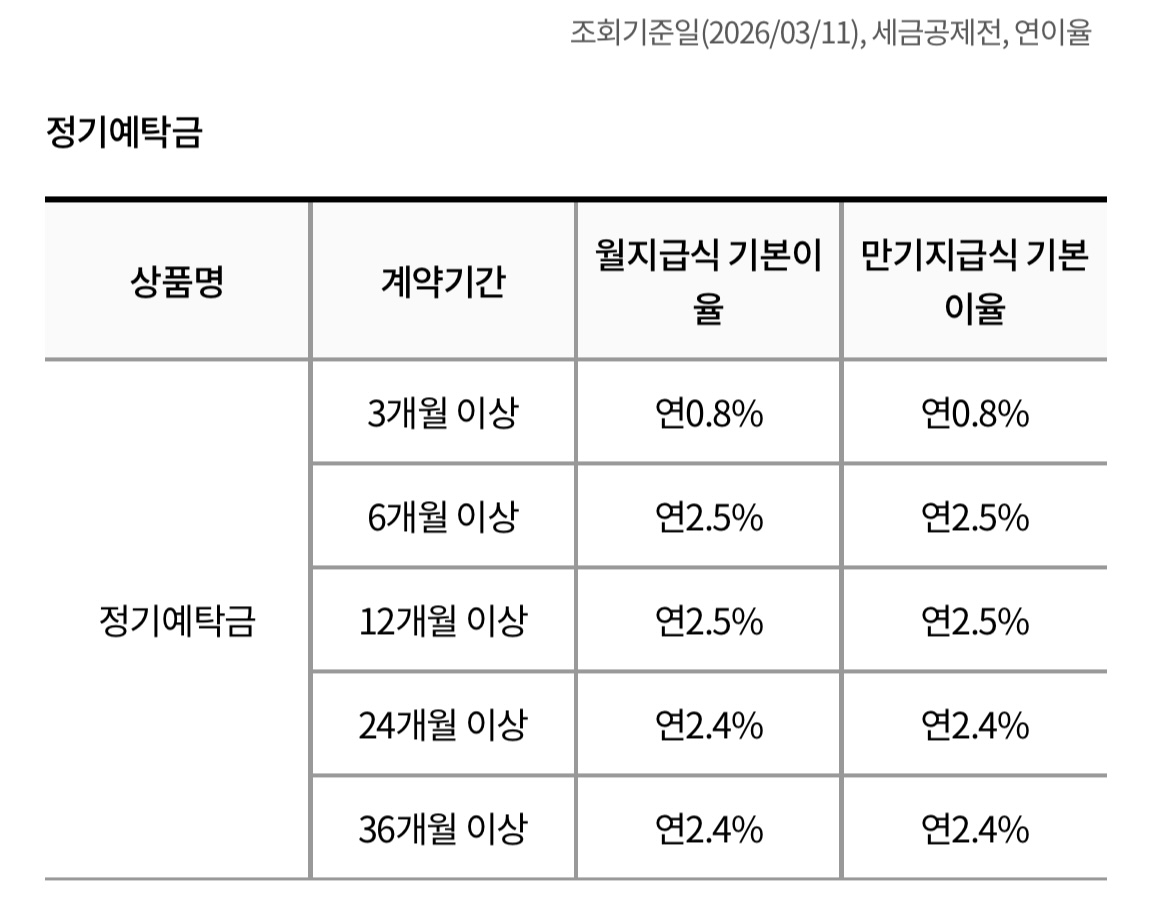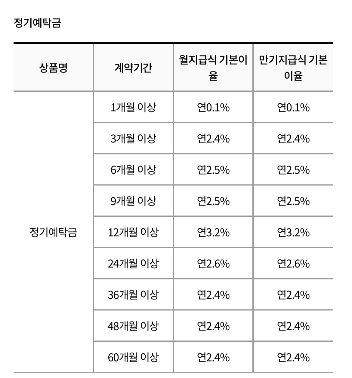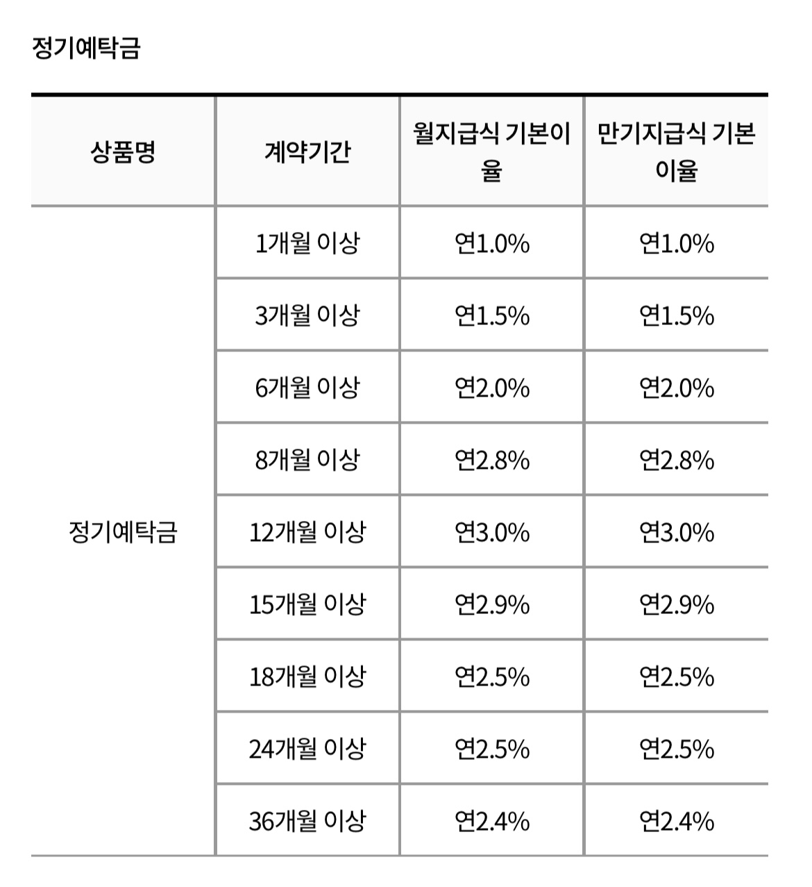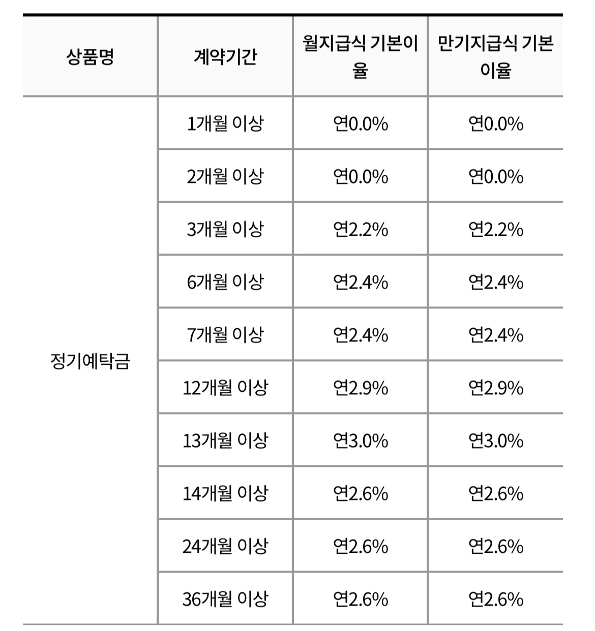 다만 정기예탁금은 만기 전에 해지할 경우 중도해지이율이 적용되어 약정 금리보다 낮은 이자를 받을 수 있습니다. 또한 만기일이 법정공휴일 · 근로자의 날 · 토요일 등인 경우에는 직전 영업일에 해지가 가능하며, 이때 약정이율을 적용하되 앞당긴 일수만큼 이자가 차감되어 지급된다는 점도 함께 알아두시면 좋습니다.