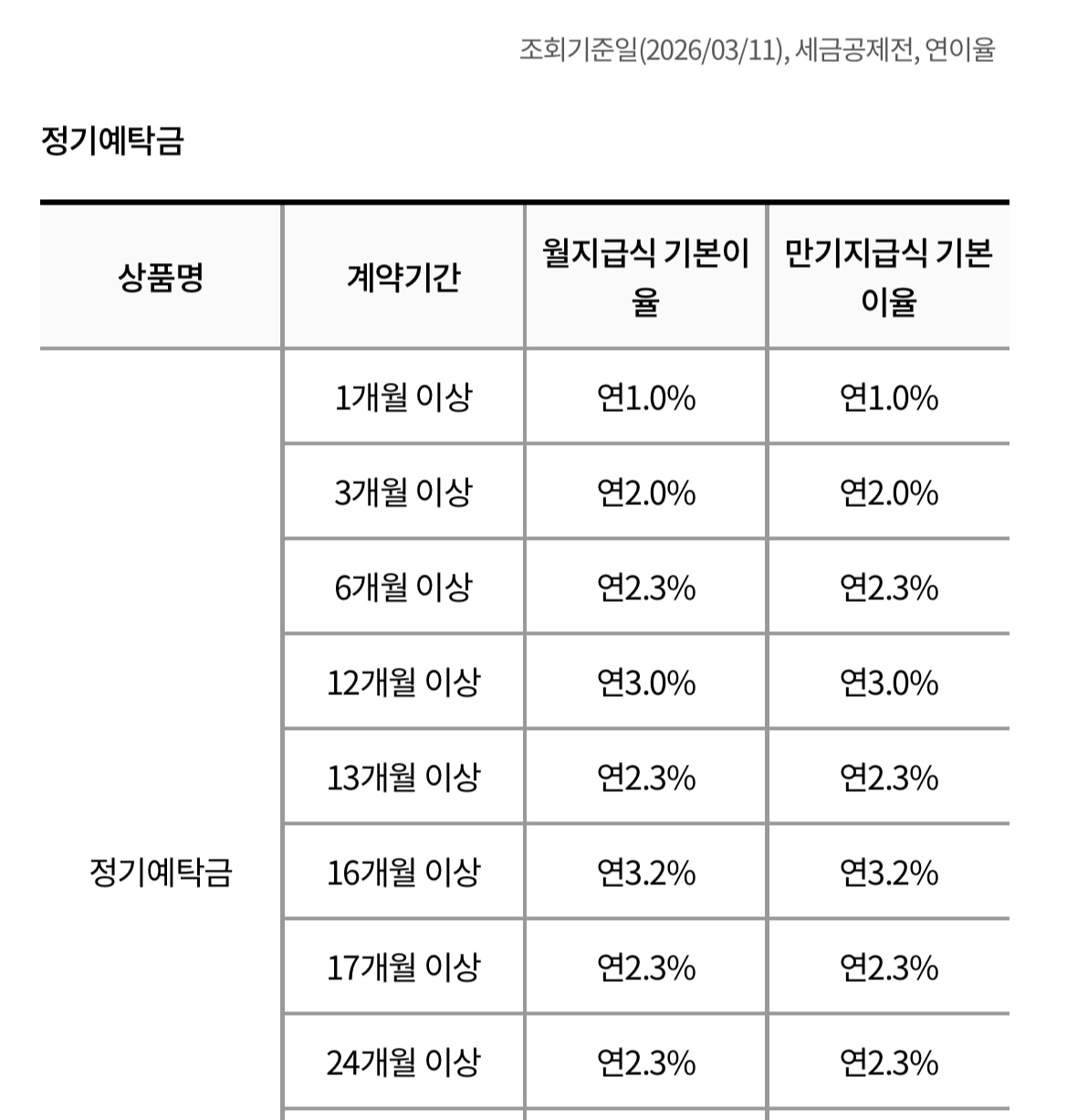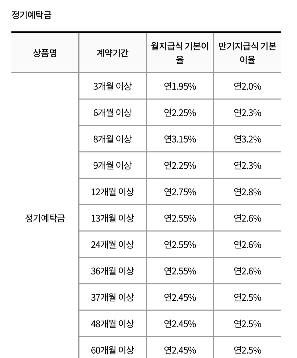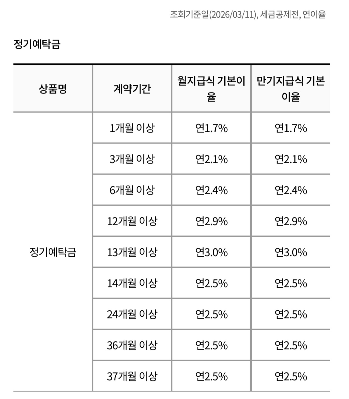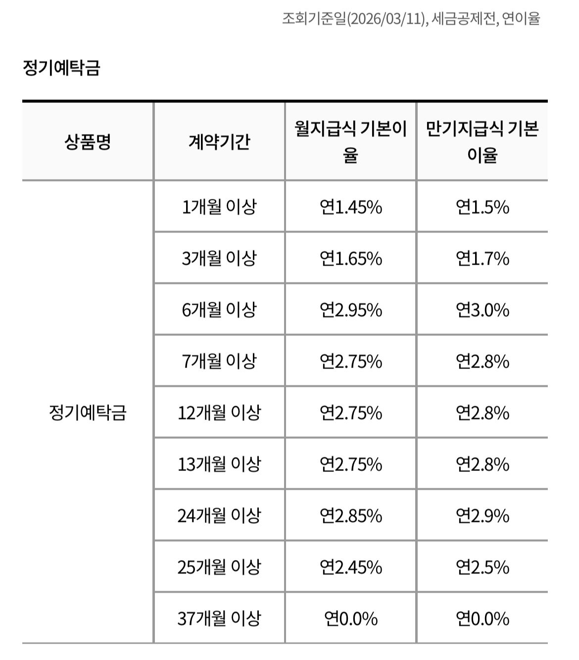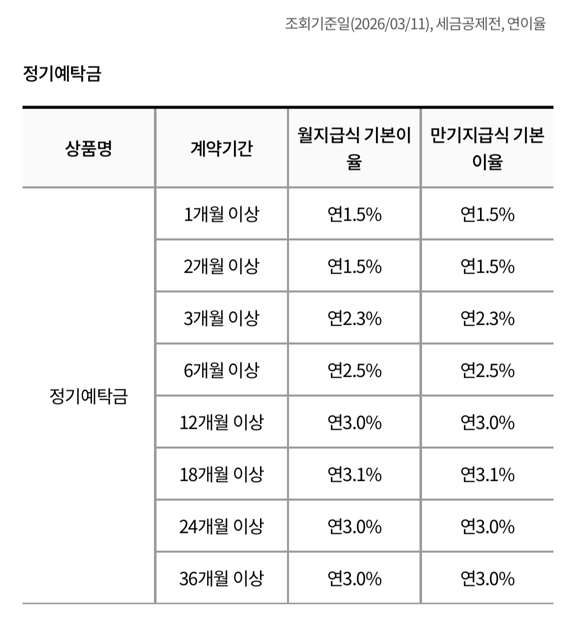 다만 정기예탁금은 만기 전에 해지할 경우 중도해지이율이 적용되어 약정 금리보다 낮은 이자를 받을 수 있습니다. 또한 만기일이 법정공휴일 · 근로자의 날 · 토요일 등인 경우에는 직전 영업일에 해지가 가능하며, 이때 약정이율을 적용하되 앞당긴 일수만큼 이자가 차감되어 지급된다는 점도 함께 알아두시면 좋습니다.