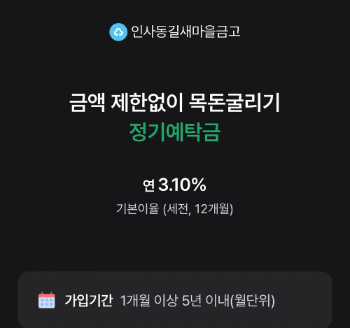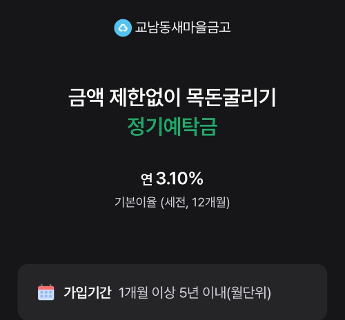 이번 글에서는 이러한 상품의 기본 구조를 바탕으로, 서울에 있는 새마을금고 더뱅킹 정기예금 금리를 한눈에 정리해 드리겠습니다.