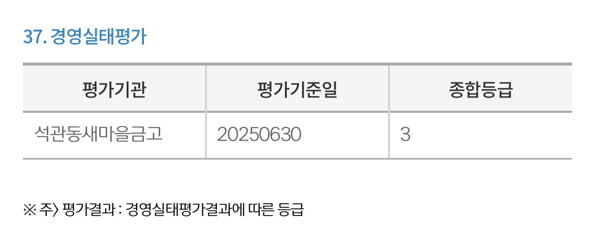 성북구 새마을금고 경영실태평가 등급